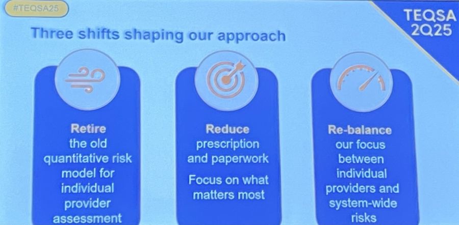 - re-balancing the way TEQSA apply their resources and efforts between assessing individual provider quality assurance and responding to sector risks