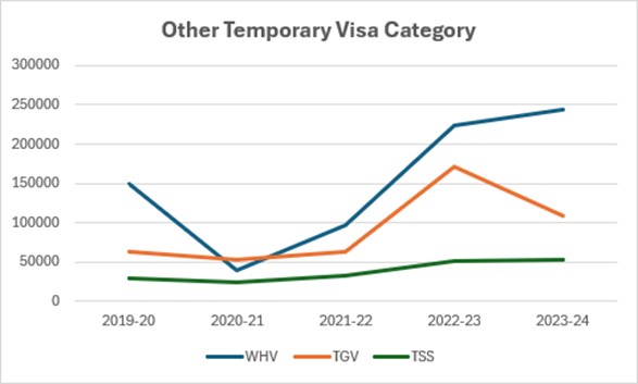 Based on the above, the TGV has substantially impacted the growth of the “other” temporary visa category. A decisive contributing factor was undoubtedly the two-year extension made available to graduates with degrees in areas of verified skills shortages in June 2023. This was another massive step towards a migration system that made sense.