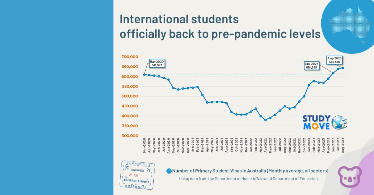 Student visa holder data for August puts Australian numbers back ahead of pre-pandemic levels, according to data consultants Studymove.