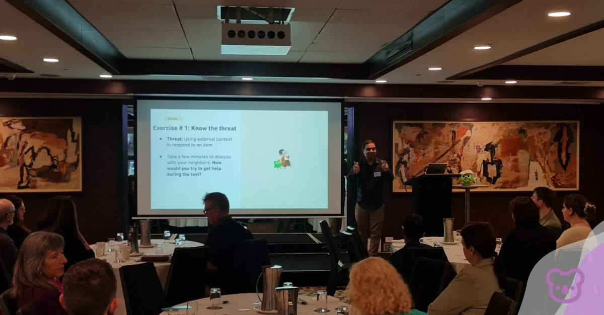 Dr. Cardwell also delved into adaptive testing, demonstrating how AI dynamically adjusts the difficulty of questions in real-time based on a test-taker’s responses. Participants were even tasked with designing their own adaptive tests, sparking lively discussions on best practices.