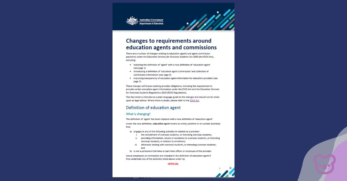 Why does this matter? As a start, education agents must be listed on a provider’s website and details reported in PRISMS. And while the fact sheet does not include ‘salaries’ in the examples of what counts as an education agent commission, this will be another consideration for providers in determining what information needs to be collected and reported.