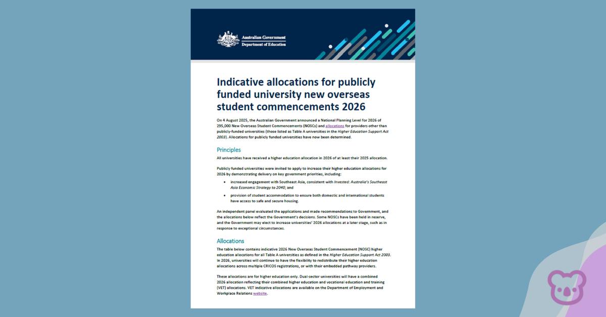 The Factsheet – Indicative allocations for publicly funded university new overseas student commencements 2026 is available here.