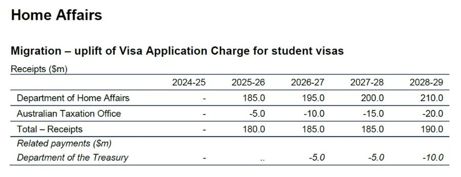 The Australian Government expects revenue of $185 million in 2025-26 following the increase in student visa application charges it imposed as part of its May election commitments.