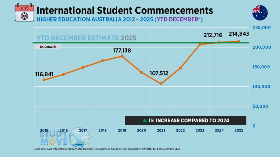 Australia’s higher education sector has entered 2026 with international student commencements broadly flat, defying expectations of a sharper correction after two years of sustained policy disruption.