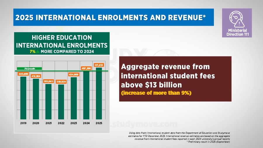 Policy settings are expected to remain largely unchanged in the year ahead, though their practical impact will become more visible. While overall new overseas student allocations have increased by around 9 per cent, nearly half of universities face constraints on growth under the allocation framework, while others retain room to expand.