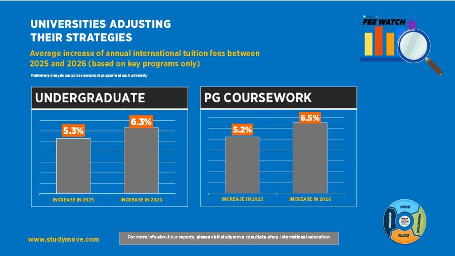 Fee increases and more targeted scholarship approaches are also becoming more evident, with average undergraduate fee rises of more than 6 per cent reported in 2025, alongside more selective use of financial incentives earlier in the conversion cycle.
